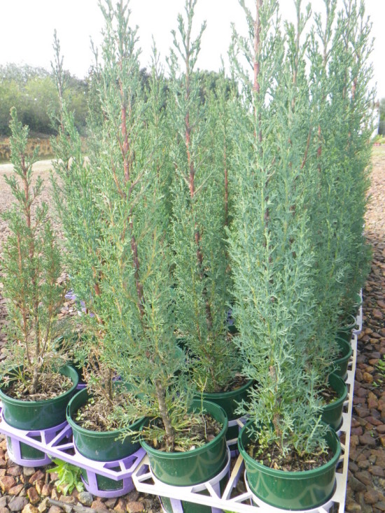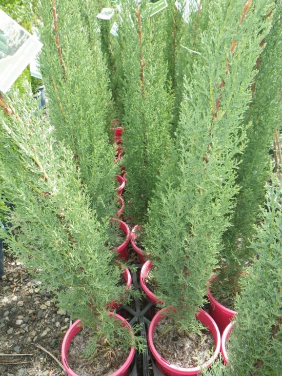 A well known conifer, very narrow, pencil shaped with attractive green foliage. A hardy, adaptable, long lived conifer that broadens with age.